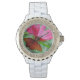 Kristall von Frauen mit Schmetterling und Blume Armbanduhr