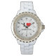 Eine wunderbare Damenuhr mit weißem Armband und grün-weiß-kariertem Ziffernblatt. Trägt sich ganz fabelhaft. Exzellenter Druck, sehr klare Farben. Schönes Design.