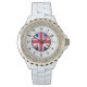 Kristall White Enamel Watch - Frauenflagge in Groß Armbanduhr