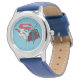 Kinderuhr aus Edelstahl mit blauem Lederarmband