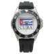 Uhr, Vintage Männeruhr mit schwarzem Lederarmband