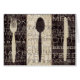 © Pela Studio/wildes Apple. Ein Schwarzweiss-Bild einer Gabel, des Löffels und des Messers. Der Hintergrund hat die Wörter, die auf ihn geschrieben werden.