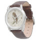 Die Natur inspiriert Armbanduhr, mit Vintager Uhuskunst auf einem Zweig, vor einem hellen Holzhintergrund. Personalisieren Sie den Namen, um Ihre Bedürfnisse Anzug. Eine tolle Geschenkidee für jeden Vogelliebhaber.