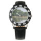 Uhr, Vintage Männeruhr mit schwarzem Lederarmband
