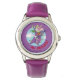 Uhr, Kinderuhr aus Edelstahluhr mit lila Lederarmband