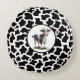 Dieses Kissen wird mit einem niedlichen Schwarz-Weiß-Kuh-Druck gezeigt. Passen Sie dieses Objekt an oder kaufen Sie es wie gezeigt.