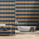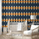 Dicke Raute rautengeometrische Muster in Orange und Beige und staubblau mit Stickereidetails im Sashiko-Stil. Modernes und feines Muster perfekt für akzentuierte Wände. Wallpaper Peel and stick lasse Ihnen, Ihre kleine Wohngestaltung zu erweitern und Ihre Miete mit Ihrer einzigartigen Design-Ästhetik zu personalisieren. Keine langweiligen weißen Kisten mehr!