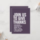 Mit fett weißer Typografie ist diese Herbst-lila Erntedank-Dinner-Einladung leicht anpassbar und Set den Ton für ein lustiges und lässiges Truthahnfest.