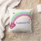 Niedliche kundengebundene Kissen für die Mädchen, die einen Regenbogenentwurf umgeben auswendig kennzeichnen. Diese personalisierten Kissen würden große Geschenke für Töchter, Nichten, Enkelinnen, Freunde und mehr machen.