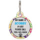 Cooler kundengerechter Haustierumbau für Ihren Hund oder Katze. Löschen Sie den gezeigten Namen und addieren Sie Ihren Haustiernamen und Ihre Telefonnummer, falls sie verloren sind. Entwurf umfaßt extravaganten Text und coole Tatzendruckgraphiken, die Sie Liebe werden! Sehen Sie auch den zusammenpassenden Entwurf mit rosa Text für Ihren Mädchenhund oder -katze!