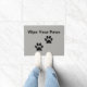 Dieses ist eine Spaßgrußfußmatte, die Abwischen Ihre Tatzen sagt. Sie können den Text zu ändern, was auch immer Sie wollen sowie die Schriftartgröße, die Farbe und die Art.