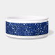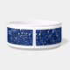 Stilvoller Hundenahrungsmittelteller, mit einem Licht und dunkelblauen einem Paisley-Musterband, um den weißen Keramikteller. Grafiken eines Shinny, der hellblaues Oval, auf der Front schaut, hat den dunkelblauen kundenspezifischen Text, der bereit ist zu personifizieren. Sehr hübscher Haustierteller, der Ihre Küche erhellt. Macht eine große Geschenkidee für jeden möglichen Hundebesitzer.