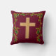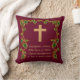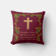 Kundenspezifischer Burgunder und Gold farbige QuerSchrifts-Kissen oder tippen Ihr Monogramm, Namen oder IHREN TEXT ein oder löschen ihn. Schöne Reben grenzen das Goldkreuz mit Ihrem Text unten an. Sie können die Burgunder-Hintergrundfarbe und den Goldtext zu jeder möglicher Farbe ändern. <b>Anruf Linda für HILFE oder Designänderungen: 239-949-9090</b>