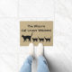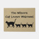 " Katzen-Liebhaber begrüßen" eine kundenspezifische Türmatte in hellbraunem mit einem Katzenliebhaberthema, welches die Silhouetten einer Mutterkatze mit ihren Kätzchen zeigt. Es gibt einen mit Ihrem Namen und Text zu personifizieren Schablonenbereich.