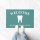 Kundenspezifische Türmatte der zahnmedizinischen Praxis mit weißem Zahnlogo. Machen Sie Ihr eigenes personalisiertes Innen- oder Fußmattenzeichen im Freienmit kundenspezifischer Hintergrundfarbe und -text. Addieren Sie Ihre eigene Empfangsmeldung, Handelsnamen, Familiennamen, Anfangsbriefe oder lustiges Zitat. Noble Geschenkidee für neues Büro, Verlegung, Speicher, Geschäft, berufliches Firmenbüro, Schablone des Geschäfts etc. Personalizable mit eleganter Typografie. Stellen Sie Ihre eigene noble Eintrittsmatte/-wolldecke für Haustür/Eingang oder Halle her. Kundengerechte Wohngestaltung/Dekorationen für Ihre zahnmedizinische Klinik. Niedliche Zahnheilkundegeschenkidee für Zahnarzt-, behilflichen oder Zahnarzthelfer.