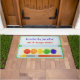 Willkommene Gäste zu Ihrem Kunststudio mit dieser personalisierten Fußmatte. Vervollkommnen Sie für jeden möglichen Künstler, Illustrator, Grafikdesigner, oder Kunstlehrer, der Entwurf schließt Aquarell-Palettenkasten eines Malers mit fünf Farben und einem Malerpinsel mit ein.
