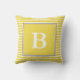 Dieses gelbe Kissen hat ein gestreiftes Muster im Hintergrund. Es gibt eine kundengerechte weiße Initiale in der Mitte eines gelben Quadrats. Personifizieren Sie dieses Wurfskissen mit dem Monogramm der Empfängers.
