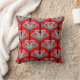 Throwkissen in einer Wiedergabe von stylized, Kunst-Dekolilie, Tapetenmuster - eine Steigung des hellen silbernen Graus/des Graus zum dunklen Graphit, betont mit Schwarzem, auf einem tiefen chinesischen roten Hintergrund