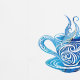 Artistic Blue Coffee Cup with Swirling Patterns ist ein grafisches Design, das in einem nahtlosen Muster erstellt wurde.