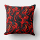 Dieses Kissen hat ein rotes und schwarzes Design.