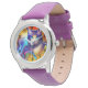 Uhr, Kinderuhr aus Edelstahluhr mit lila Lederarmband