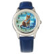 Kinderuhr aus Edelstahl mit blauem Lederarmband