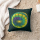 Grün, Blau und Gelb, segmentiert (oder artikuliert), sphärisches Fraktal auf dunkelgrünem Hintergrund. Passen Sie Ihren eigenen Text auf der Rückseite an.