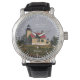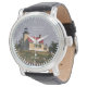 Uhr, Vintage Männeruhr mit schwarzem Lederarmband
