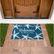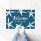 Beachy Fußmatte, die weiße Starfish, weißen Skript"Willkommens" Text, Marineblauhintergrund und den Ihren Familiennamen im weißen Skript kennzeichnet! Treten Sie in Sommer mit dieser fantastischen Fußmatte.