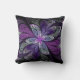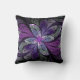 Platz werfen Kissen mit "La Chanteuse Violett", ein Apophysis-Fraktal von Susan Wallace. Copyright © 2014, Susan Wallace. Imitate Buntglasfenster Blätter in kräftigen lila, silbernen, zwinkligen und violetten Farbtönen bilden eine zentrale Blume von lebendigen lila in diesem faszinierenden abstrakten Stück.