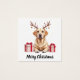 "This beautiful illustration features a detailed portrait of a loving Yellow Labrador Retriever with its characteristic broad head, gentle expression, and smooth golden coat. The dog is given a charming holiday touch with reindeer antlers adorned with small golden and green/blue ornaments. Two beautifully wrapped Christmas presents with red ribbons sit prominently on either side. This high-quality graphic is ideal for personalized holiday gifts for Lab owners, Christmas cards, apparel, ornaments, or any product celebrating this friendly and devoted dog breed."
