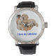 Uhr, Vintage Männeruhr mit schwarzem Lederarmband