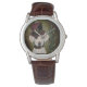 Uhr, Vintage Männeruhr mit schwarzem Lederarmband