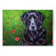 Reproduktion eines originalen Acrylgemäldes von Michelle Wrighton aus Poppy, einem wunderschönen schwarzen Labrador Retriever Hund, der auf einem Feld von roten Mohn sitzt