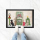 Labrador Retriever Weihnachts-Doormat. Zwei Labrador Hunde sitzen vor einer malerischen, weihnachtlich dekorierten Veranda.