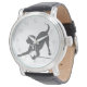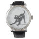 Uhr, Vintage Männeruhr mit schwarzem Lederarmband