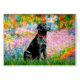 Der Garten von Claude Monet in Giverney, der an einen schwarzen Labrador-Retriever angepasst wurde, war in Wirklichkeit Monets Garten, voller farbenfroher Blume.