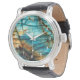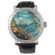 Uhr, Vintage Männeruhr mit schwarzem Lederarmband