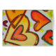 Pfirsich, Rosa und Orangenherzen kreuzen sich wie Wolken, die in einem Himmel treiben. Eine grüne Kontur verfolgt jedes Herz. Hellgelbe Farbpunkte sind wie Konfetti zwischen den Herzen. Die Aquarellmalerei hat oben eine leichte Goldschicht und rosa. Personalisieren Sie diese Karte mit Ihrem eigenen Text und Bildern mit der Option Anpassen. Detail aus dem Inspirationswort "Lachen" Gemälde.