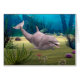 Niedlich lächelnder Delphin auf blauem Fantasy-Ozean Hintergrund. Perfektes Geschenk für alle, die diese phantastischen Tiere Lieben