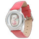 Uhr, Kinderuhr aus Edelstahl mit rosa Lederarmband