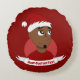 Rundkissen mit einer Illustration eines fröhlich lächelnden afroamerikanischen Mannes mit Hut des Weihnachtsmannes; bearbeitbare Textvorlage; Weihnachtsfeiergestaltung mit rotem Hintergrund