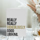 Es gibt mehr im Leben als wirklich, wirklich lächerlich gut auszusehen. Aber das ist nicht gemein, dass man nicht ein wenig zeigen kann! Design zeigt das Zitat in der modernen Blocktypografie mit goldenen Imitate Glitzer Akzente (beachten Sie bitte, dass Glitzer ein digitales Bild ist, nicht Glitzer).
