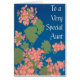 Eine hübsche und vielseitige Grußkarte für eine Special Tante, mit lachsfarbenen Geranien auf tiefblauem Hintergrund, mit weißer Schrift, Sie können diese Karte an Ihre Tante zum Muttertag oder zum Geburtstag schicken, oder sogar als 'Get Well'-Karte. Von Judy Adamson aus können Sie die Insider-Nachricht nach Bedarf personalisieren.