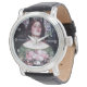 Uhr, Vintage Männeruhr mit schwarzem Lederarmband