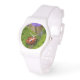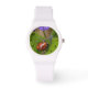 Ladybug über süße Violettsorten-Blume Armbanduhr