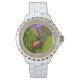 Ladybug über süße Violettsorten-Blume Armbanduhr