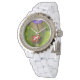 Eine wunderbare Damenuhr mit weißem Armband und grün-weiß-kariertem Ziffernblatt. Trägt sich ganz fabelhaft. Exzellenter Druck, sehr klare Farben. Schönes Design.