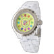 Eine wunderbare Damenuhr mit weißem Armband und grün-weiß-kariertem Ziffernblatt. Trägt sich ganz fabelhaft. Exzellenter Druck, sehr klare Farben. Schönes Design.