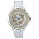 Ladybugs White Blume Diamond Butterfly Armbanduhr